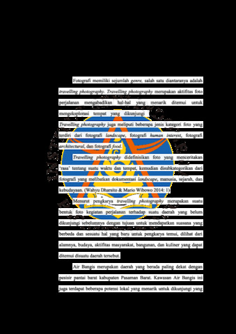 | Uncontrolled Keywords: | Travelling Photography; Air Bangis; Wisata Alam Pulau Pigago; Teknik Stop Action; Fotografi Nilai Cerita. |